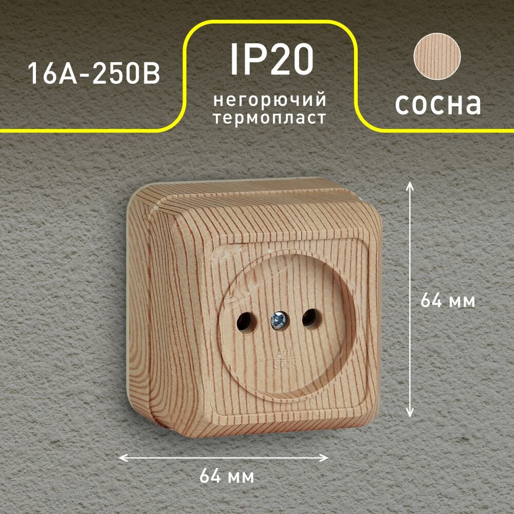 Розетка Розетка Intro Quadro 2-201-11 без заземления 2P 16А-250В IP20 открытой установки сосна