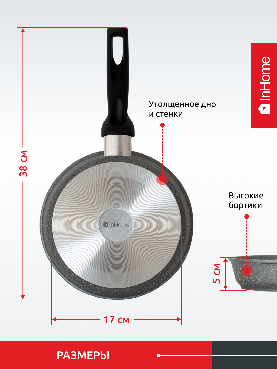 Литая сковорода с антипригарным покрытием InHome, IN18/MR0 1 232 ₽ Подробнее