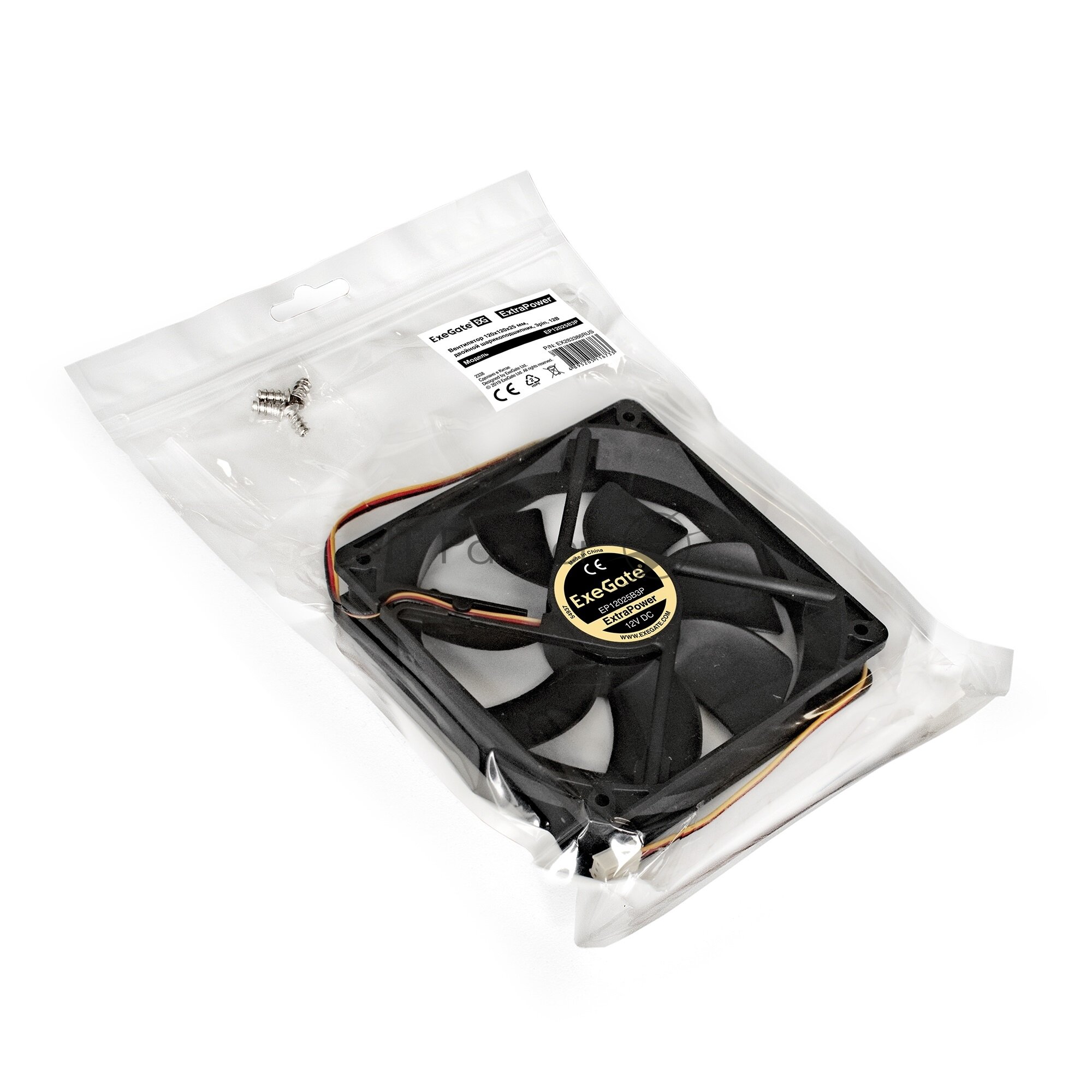 Exegate EX283386RUS Вентилятор ExeGate ExtraPower EP12025B3P, 120x120x25 мм, двойной шарикоподшипник, 3pin, 1600RPM, 25dBA