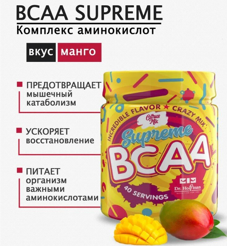 Аминокислоты БЦАА Dr Hoffman Supreme 250 г, вкус Манго