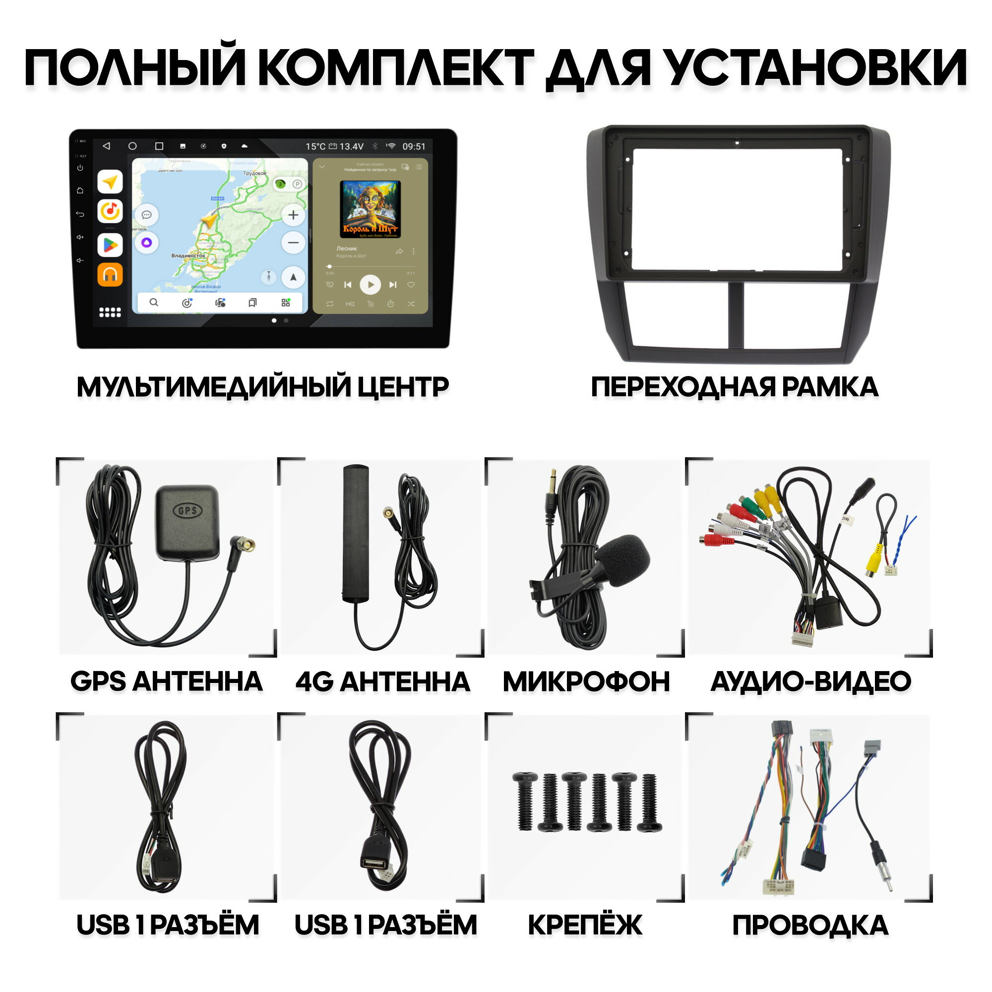 Автомагнитола Штатная магнитола Wide Media Subaru Impreza 2008 - 2012, Forester 2008 - 2012 / Android 10, 9 дюймов, 4/32GB, 8 ядер, DSP, 4G