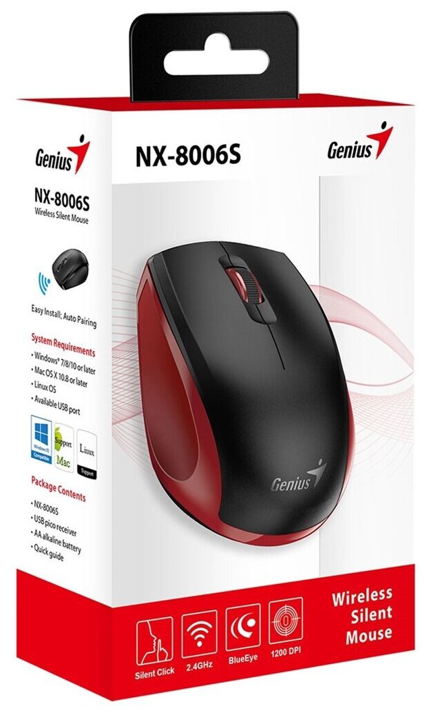 Мышки Беспроводная мышь Genius NX-8006S, черный/красный