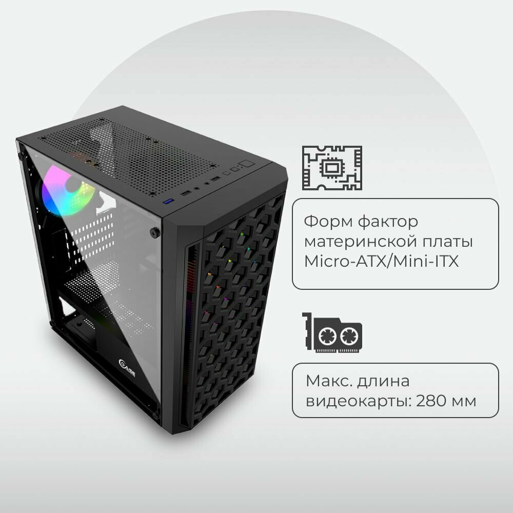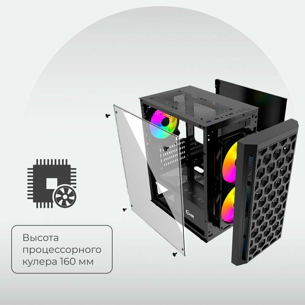 Powercase CMIMTB-L3 Корпус Mistral Micro T3B, Tempered Glass, Mesh, 2x 140mm + 1х 120mm 5-color fan, чёрный, mATX (CMIMTB-L3)