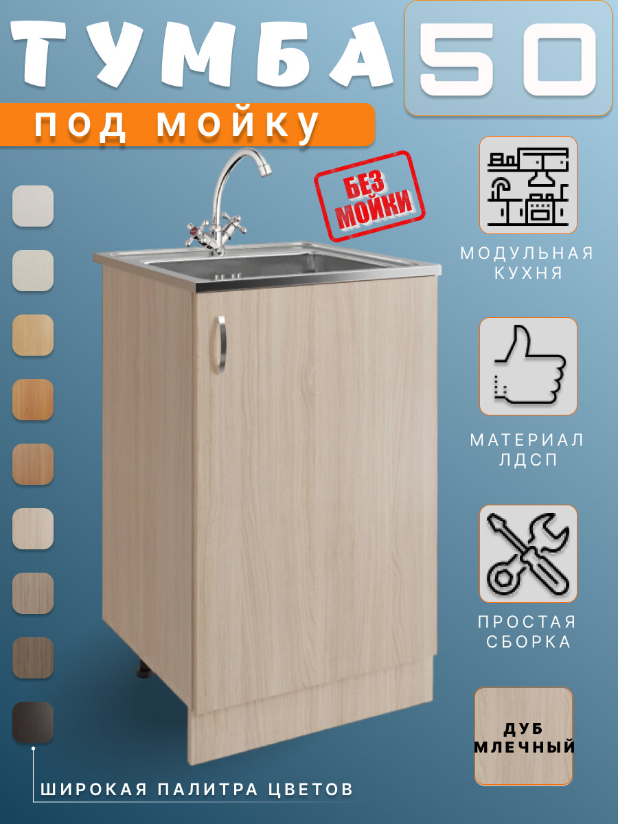 Кухонный гарнитур. Тумба под мойку для кухни 50 см, дуб млечный 4 630 ₽ Подробнее