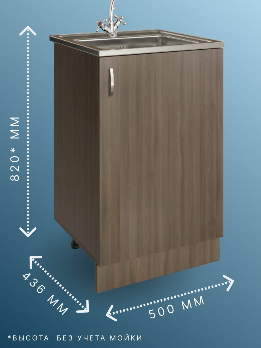 Модуль напольный, тумба под мойку для кухни, 50х43,6х82, ясень темный