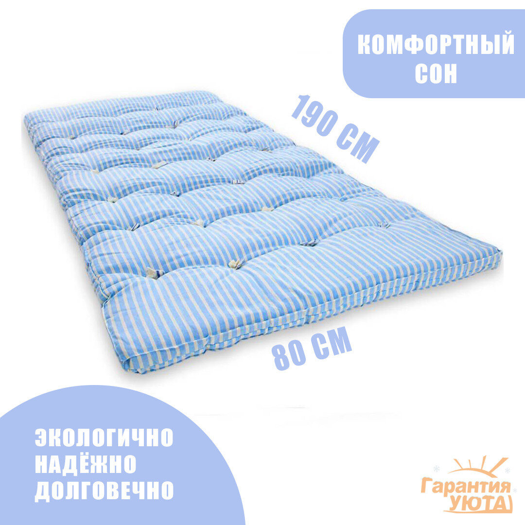 Матрас ватный Гарантия Уюта РВ Надёжный, чехол тик, 70*190, толщина 8 см, 1 578 ₽ Подробнее