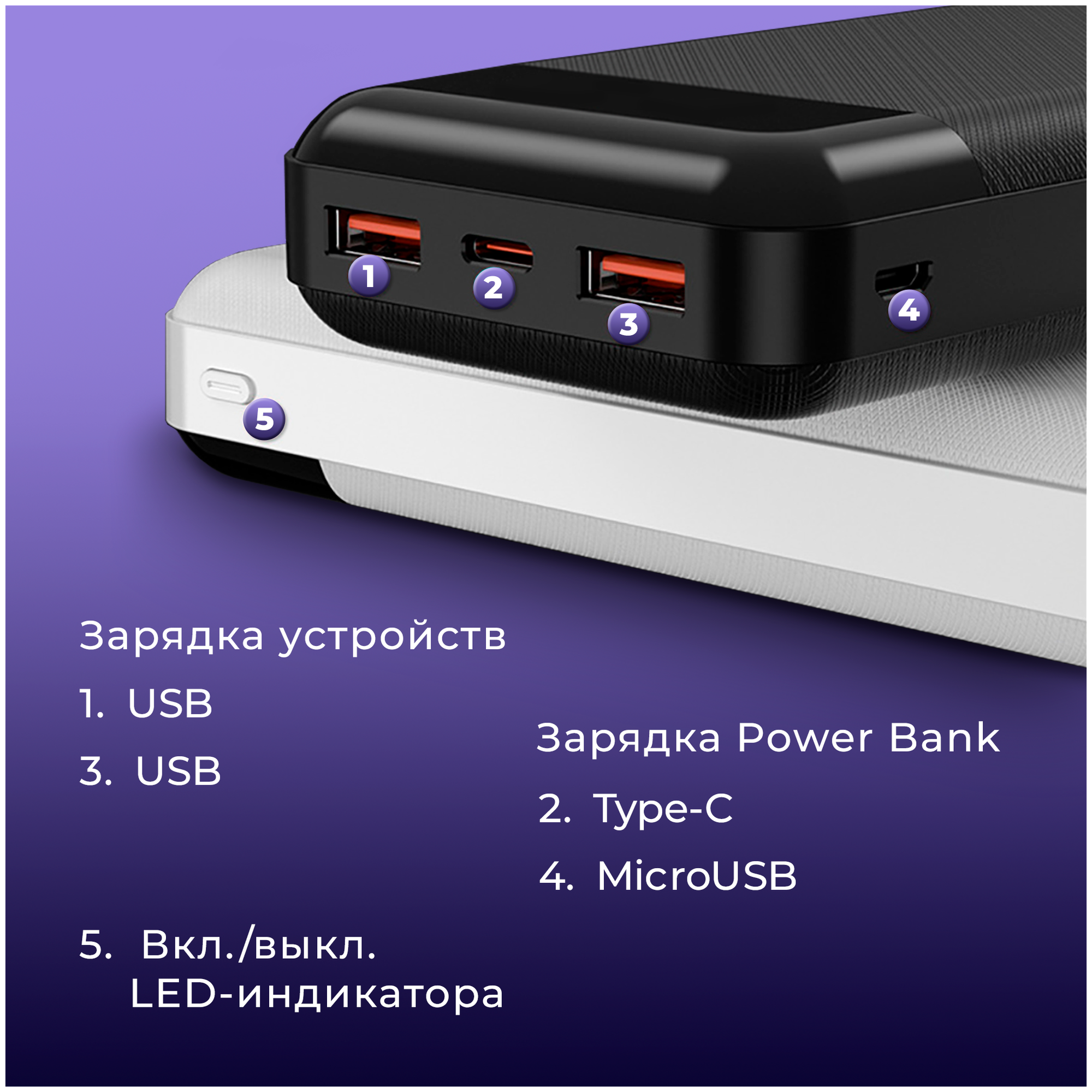 Повербанк (powerbank), WALKER, 20000mah с быстрой зарядкой, пауэр банк, внешний аккумулятор для телефона iPhone, Xiaomi, Samsung, power bank, белый 2 298 ₽ Подробнее