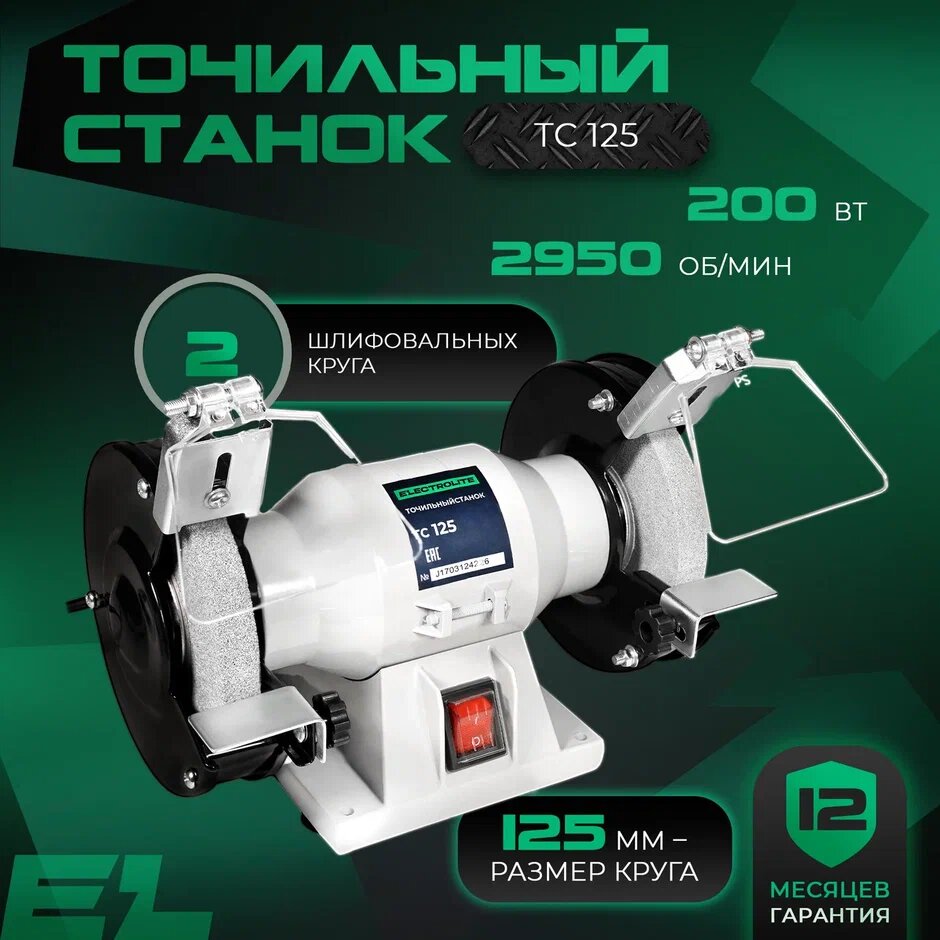 Точильно-шлифовальный станок Точильный станок / Точило электрическое / Заточной станок / Наждак электрический ELECTROLITE ТС 125 ( 125 мм диск, 200 Вт мощность )