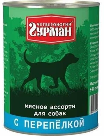 Четвероногий Гурман консервы для собак Мясное ассорти с Перепелкой 340г