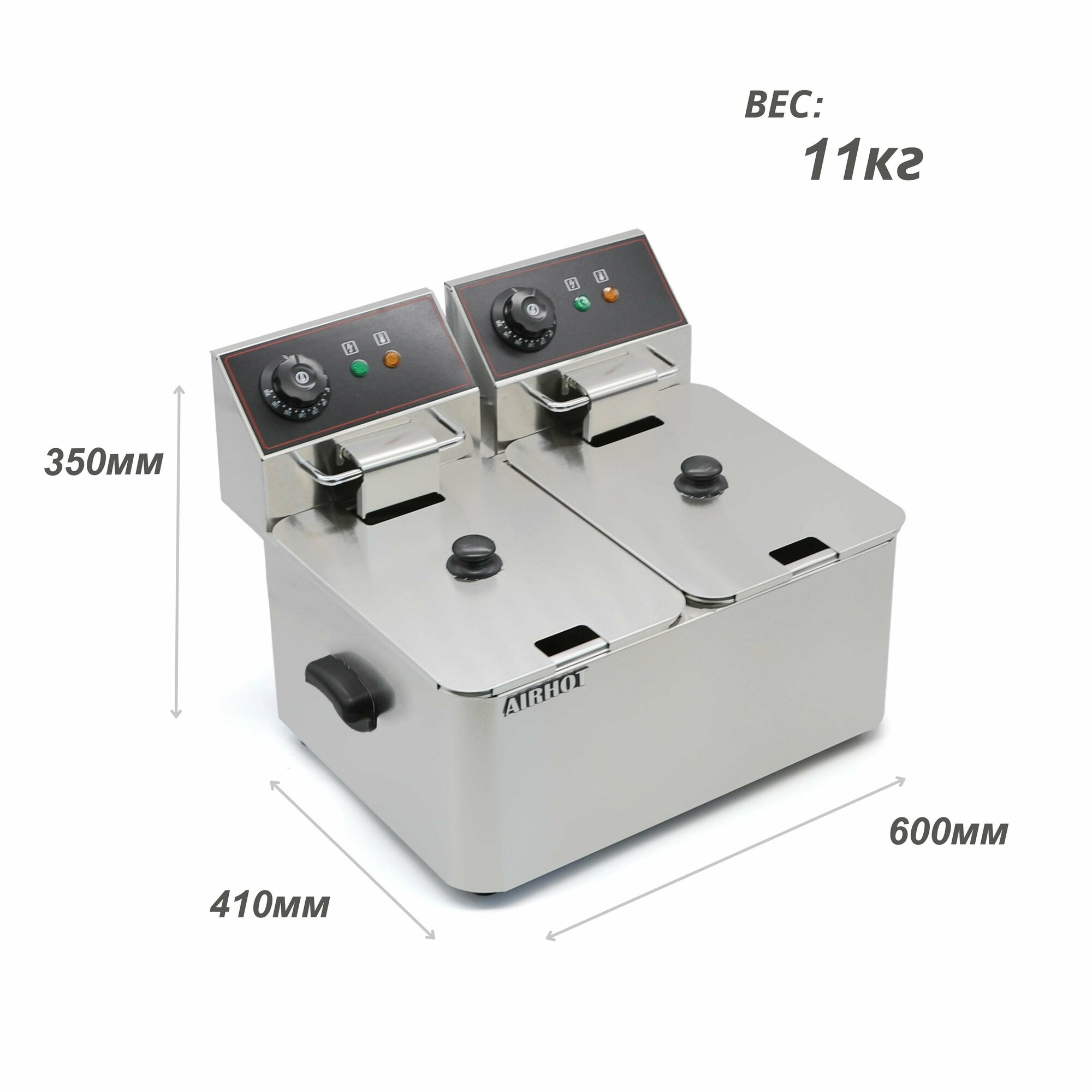 Фритюрницы и мультипечи Фритюрница AIRHOT EF8+8 со съемными чашами 8л+8л, фритюрница профессиональная для кафе, ресторана, электрофритюрница, 6кВт