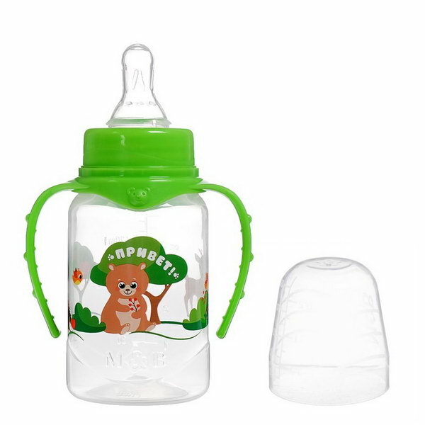 Бутылочки (поилки) Бутылочка для кормления "Лесная сказка", классическое горло, с ручками, 150 мл, от 0 мес., цвет зелёный