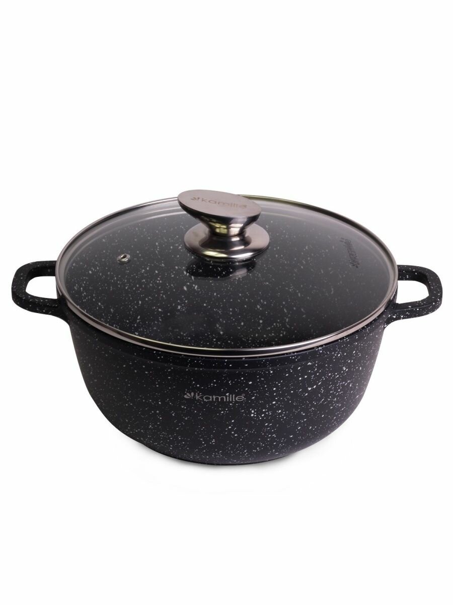 Кастрюля Кастрюля 24*11,5cm из литого алюминия с антипригарным покрытием "чёрный мрамор" и стекляной крышкой