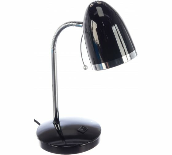 Лучшие цены. Современный универсальный настольный светильник, изготовленный из металла, для освещения рабочего места на столе в офисе и дома. Хромированный ободок плафона и хромированная ручка плафона украшают внешний вид светильника. Устанавливается на горизонтальной поверхности. Гибкая хромированная стойка светильника позволяет регулировать положение плафона. В качестве источника света может использоваться лампа мощностью до 40 Вт с цоколем E27. Выключатель находится на основании. Длинный провод (1,6 м). Магазины в вашем городе.