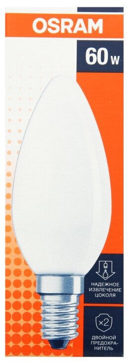 Лампа Накаливания OSRAM 60W 230V E14 миньон Свеча матовая 660Лм Теплый белый свет, уп. 10шт