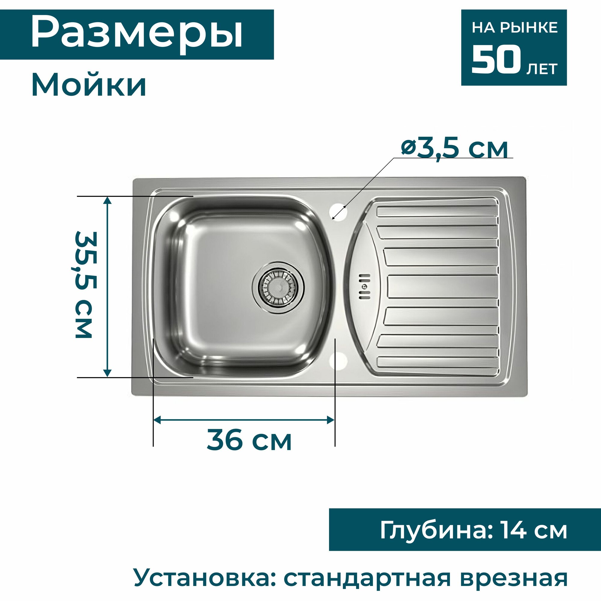 | Отверстие под смеситель | + |