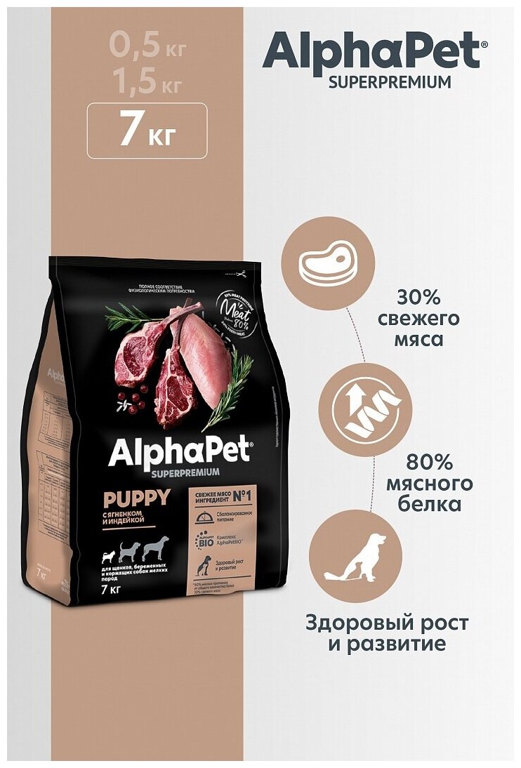Корм для собак AlphaPet Superpremium 7кг корм для щенков мелких пород с ягненком и индейкой