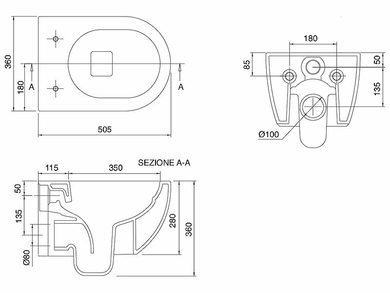 Унитаз подвесной, безободковый Scarabeo MOON 5520/CL, без крышки и креплений, белый