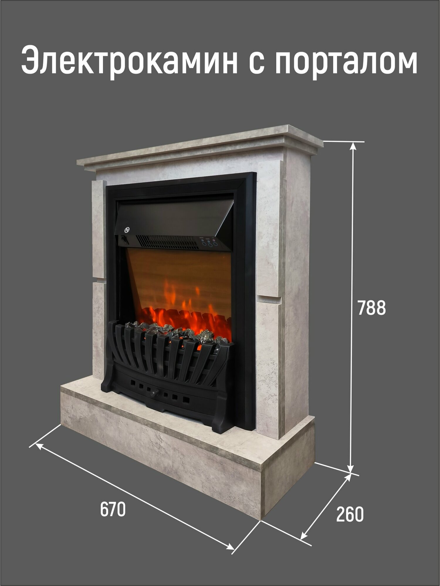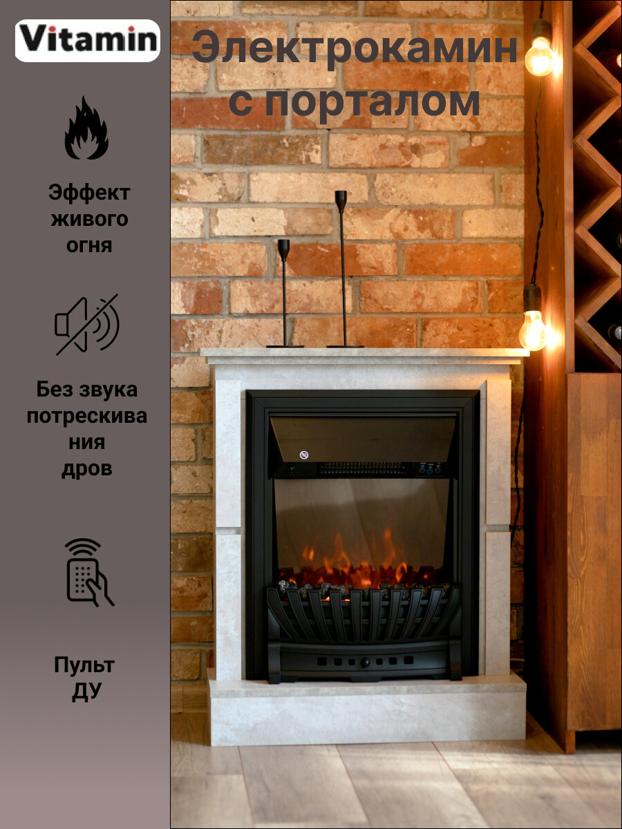 Электрокамины Камин электрический VITAMIN с очагом AspenBlack и серым порталом