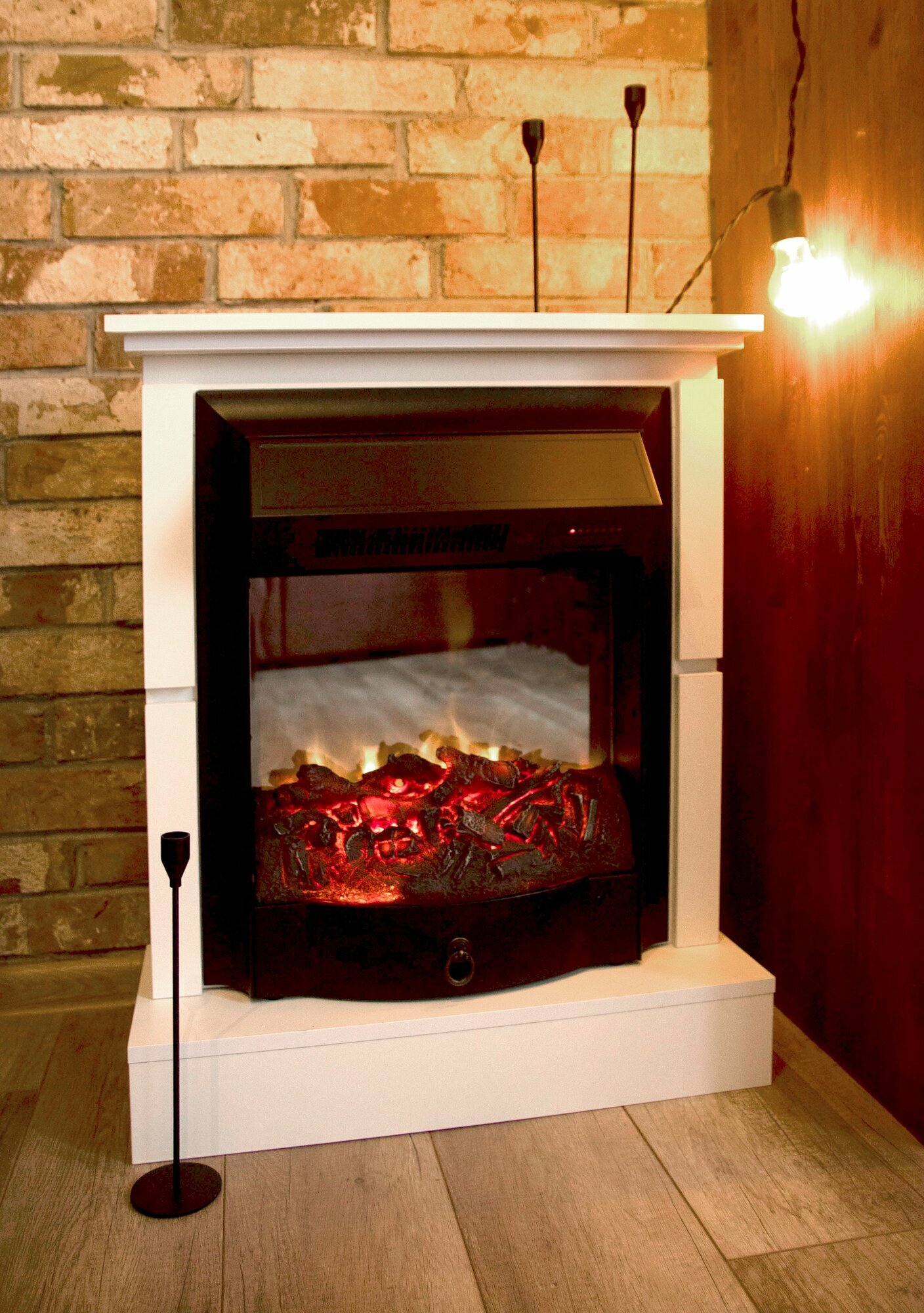 Электрокамины Электрический камин с порталом Vitamin белого цвета и эффектом живого огня