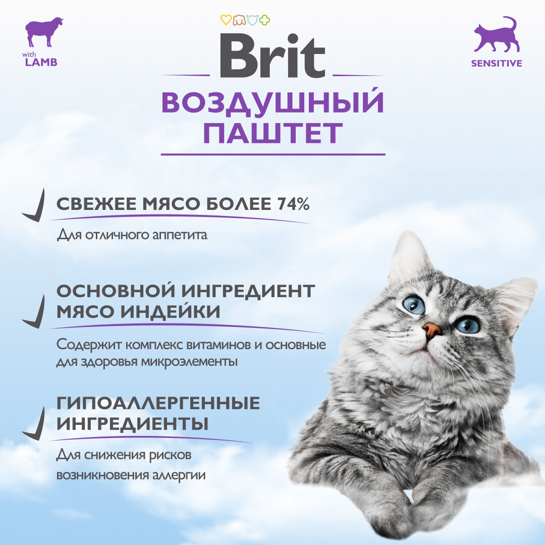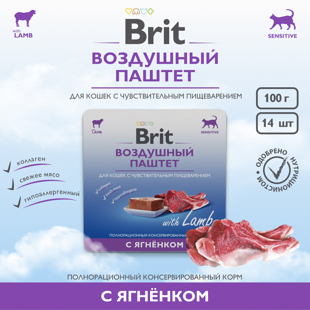 Brit воздушный паштет для кошек с чувствительным пищеварением Ягненок, 100 г. упаковка 14 шт