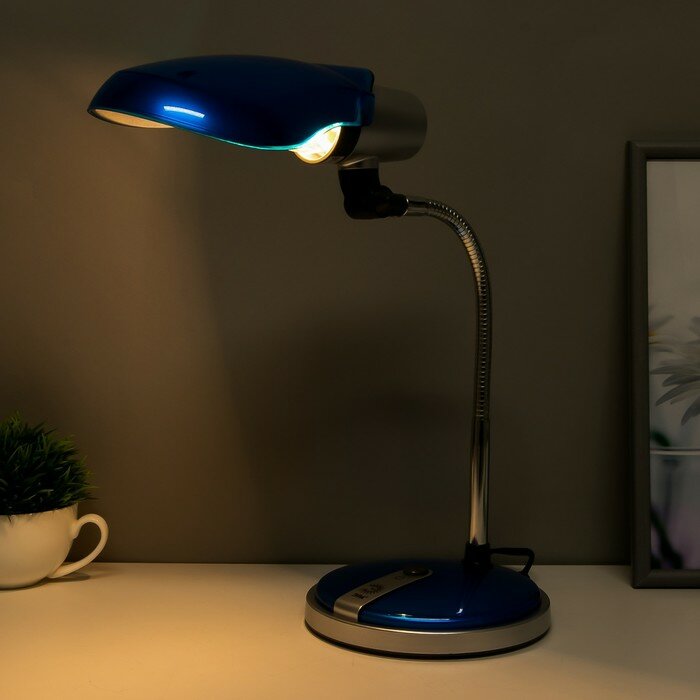 Лампа офисная ЭРА NE-301-E27-15W-BU, E27, 15 Вт, цвет арматуры: серебристый, цвет плафона/абажура: синий