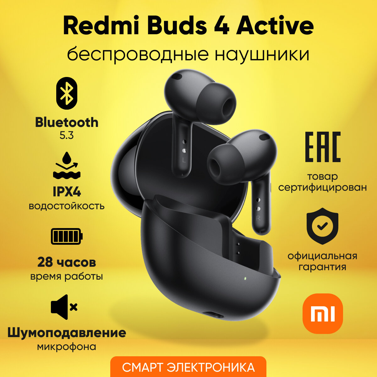 Xiaomi Наушники беспроводные с микрофоном Redmi Buds 4 Active, черный 2 998 ₽ Подробнее