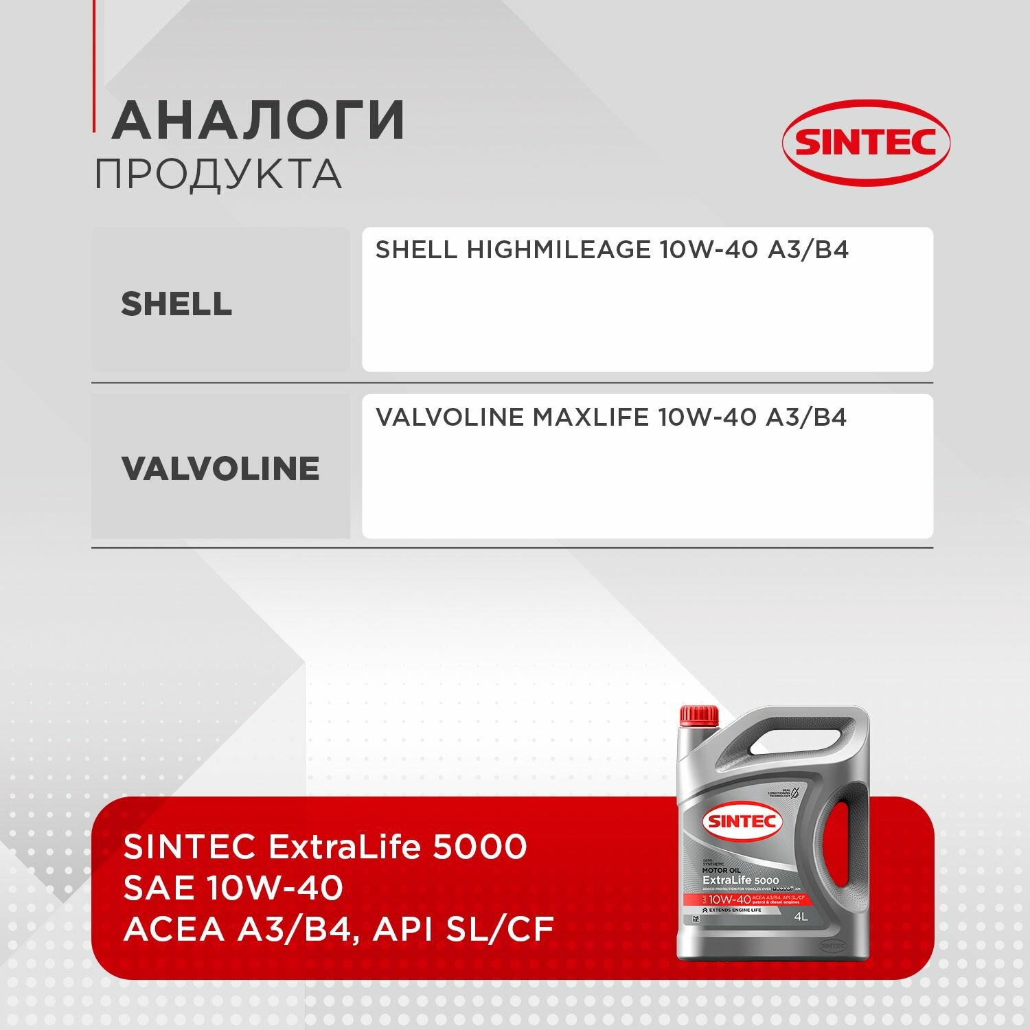 Моторные масла Моторное масло Sintec ExtraLife 5000 10W-40 A3/B4 4л 600252