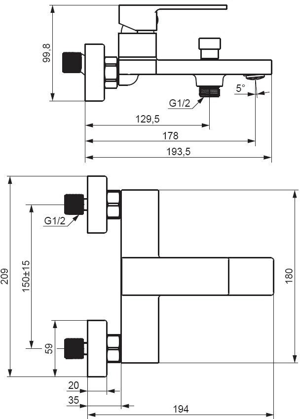 Смесители Смеситель для ванны Damixa Gala 531000000 хром, покрытие High Gloss, керамический картридж Light Flow, аэратор EcoSave,