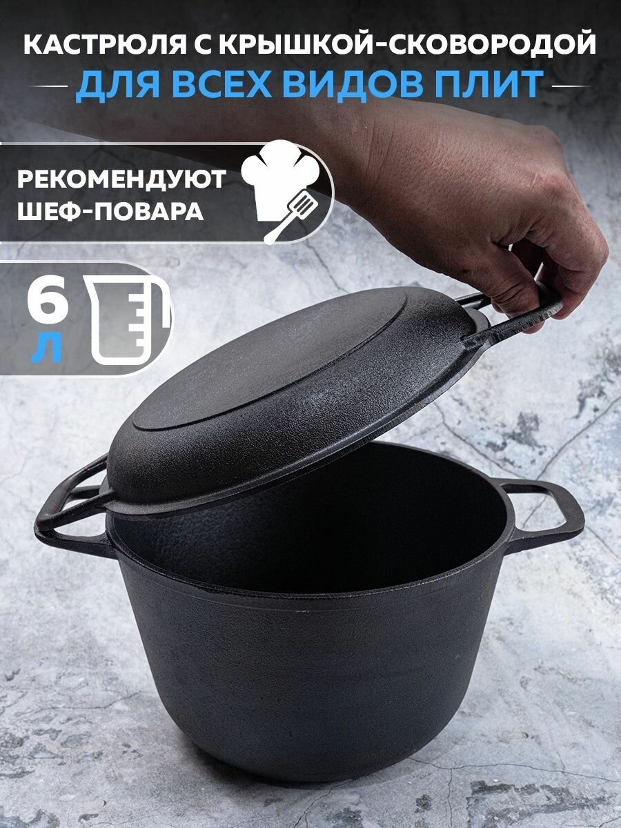 Кастрюли Кастрюля с крышкой-сковородой Гардарика, чугунная, 6 л