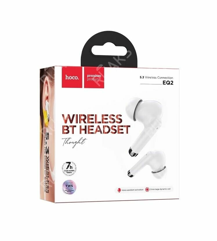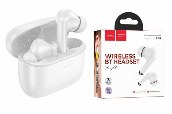 Наушники беспроводные -HOCO EQ2, Thought, Bluetooth, TWS, цвет: белый