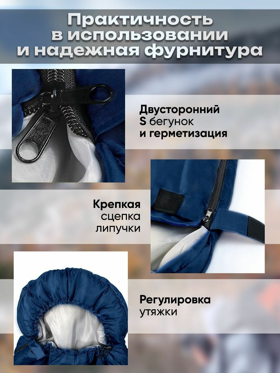 Спальные мешки Спальный мешок туристический с капюшоном Classmark 210 см, Одеяло, для рыбалки, охоты, активного отдыха и похода / Синий