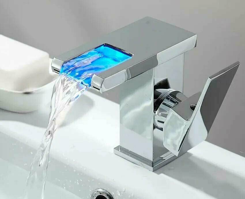 Смесители Смеситель с LED подсветкой (меняется от температуры воды) из нержавеющей стали для раковины Bono Mini Silver (однорычажный) хром