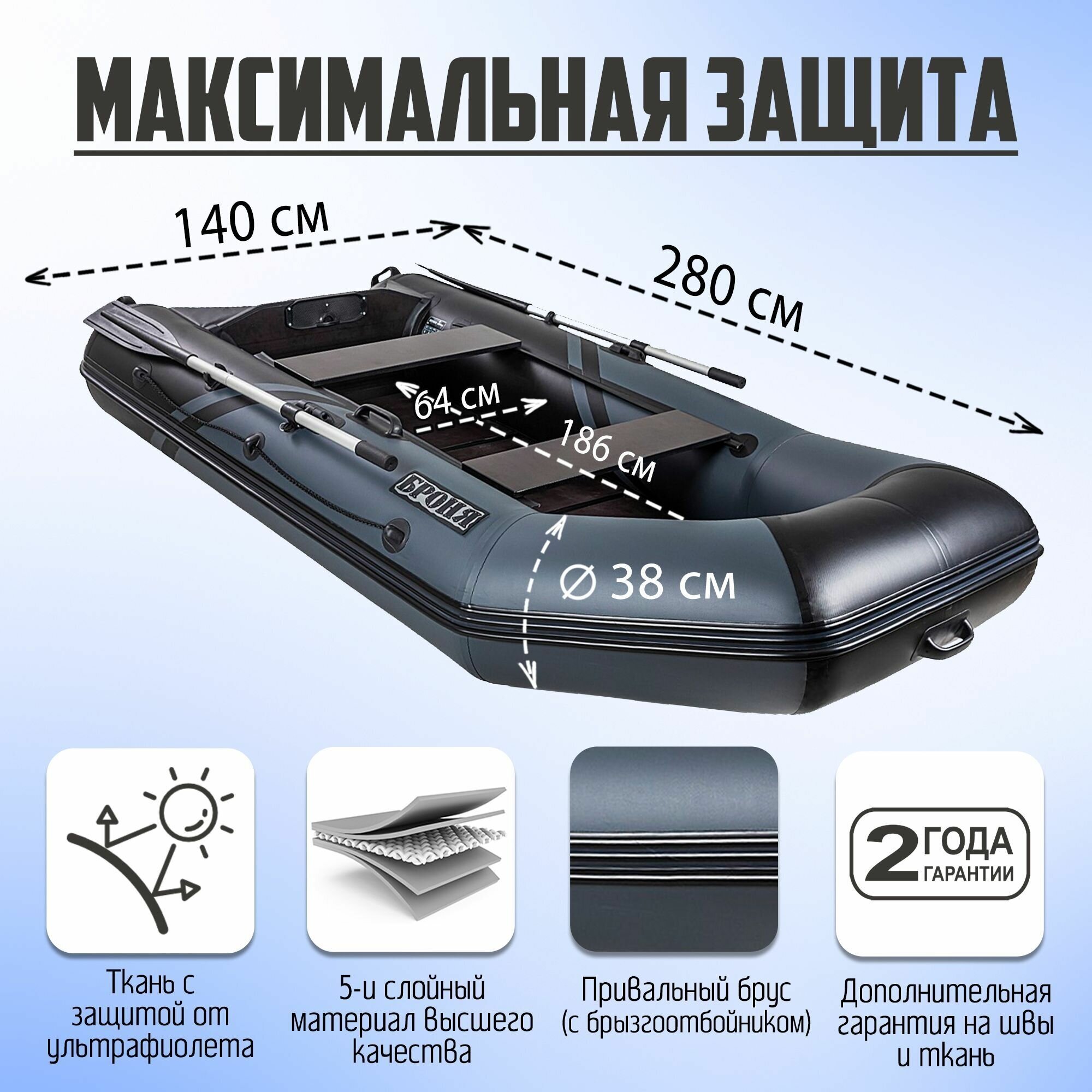 Надувные лодки Лодка ПВХ под мотор Броня-280СК, Клееные швы, с усилением