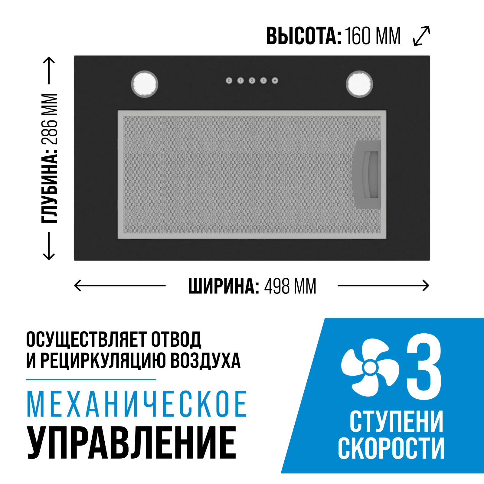 Вытяжки Вытяжка кухонная 50 см встраиваемая KUCHE VBM 500 BL черная для кухни