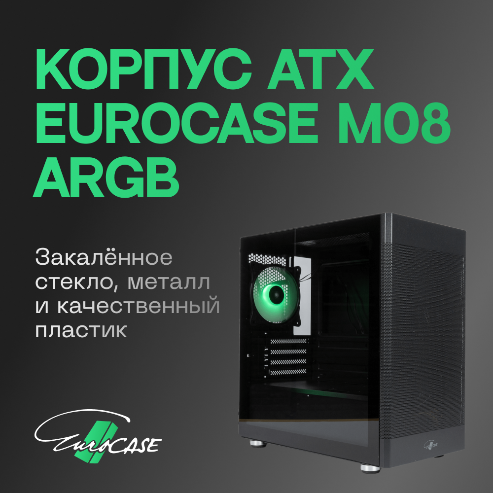 Корпуса Компьютерный корпус mATX Eurocase M08 ARGB черный без БП закаленное стекло USB 3.0