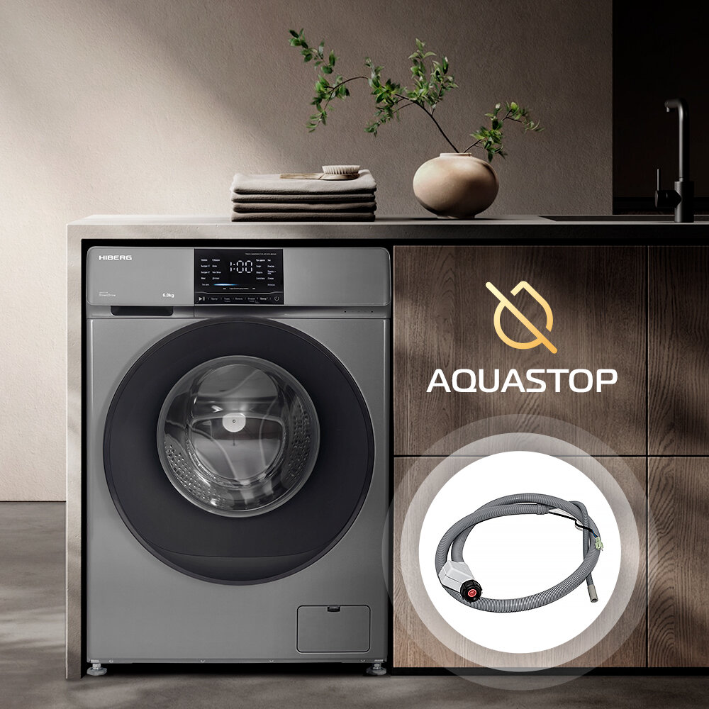Стиральная машина HIBERG i-DDQ6 - 612 Sd Inverter, Прямой привод DD, Слайдерное управление, Подсветка барабана, 6 кг, 1200 оборотов