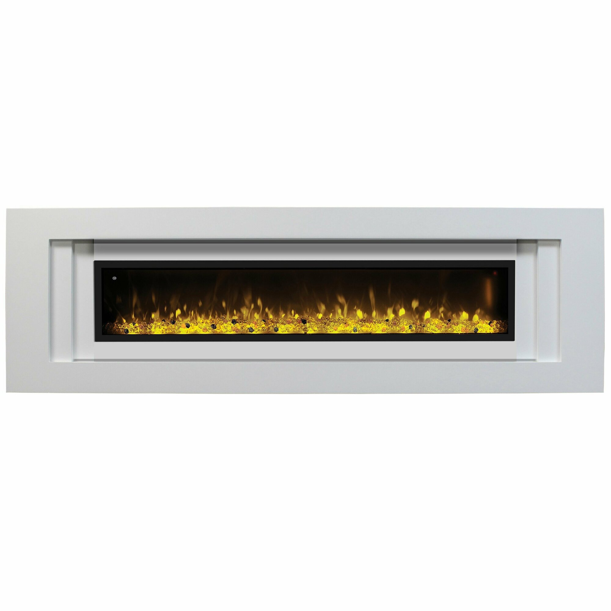Линейный электрокамин RealFlame Stockholm WT c очагом Saphir 60, кристаллы, обогрев, пульт ДУ (линейный электрический камин)