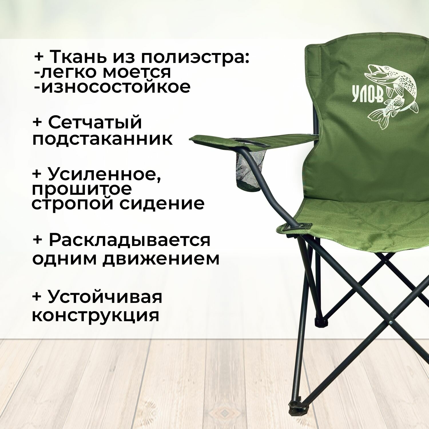 Стул складной туристический "улов", стул походный широкий-усиленный в чехле, для рыбалки, туризма и отдыха, черно-зеленый 4 999 ₽ Подробнее