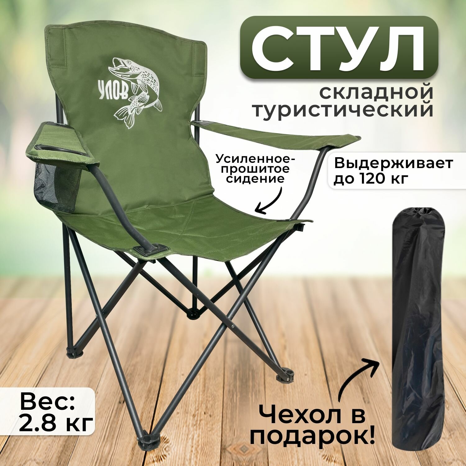 Туристическая мебель Стул складной туристический "улов" усиленный в чехле, зеленый