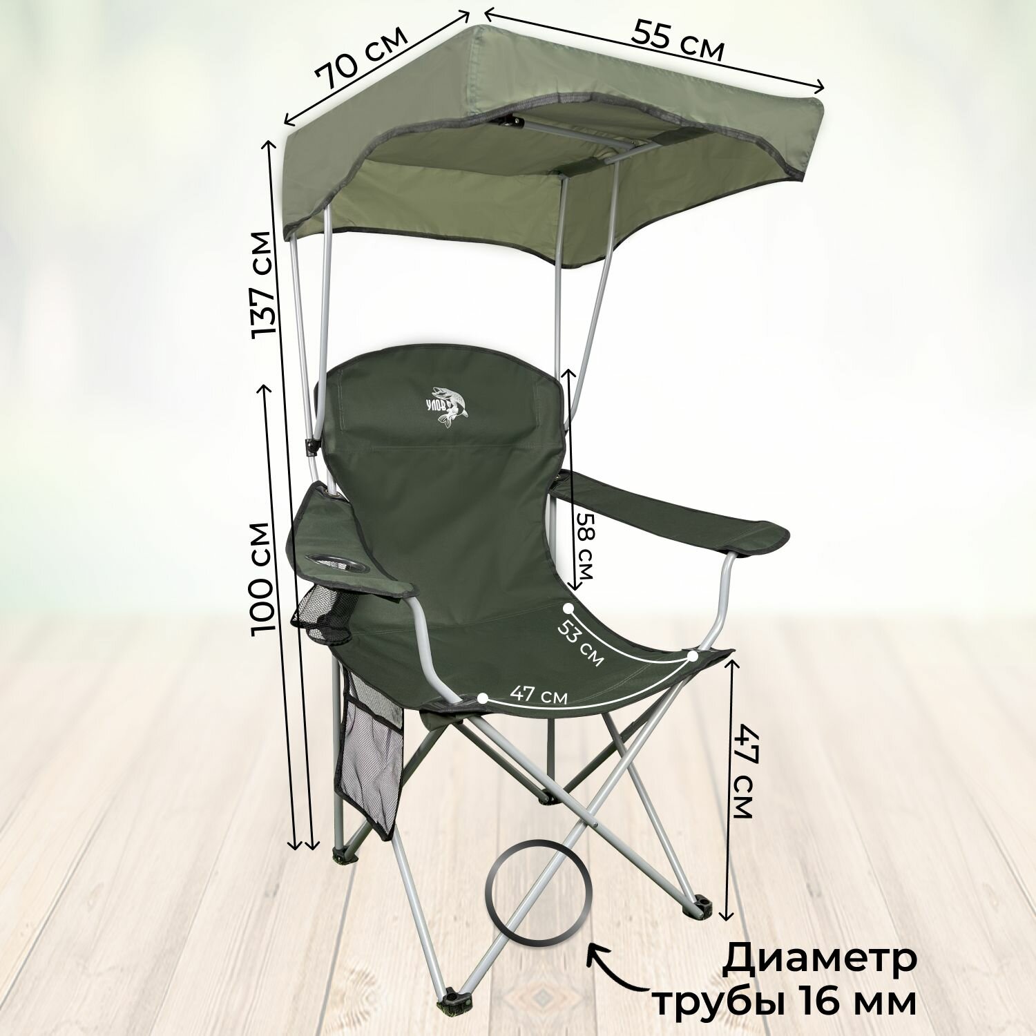 Туристическая мебель Стул складной туристический "улов" со съемным навесом , стул походный в чехле, для рыбалки, туризма и отдыха, зеленое
