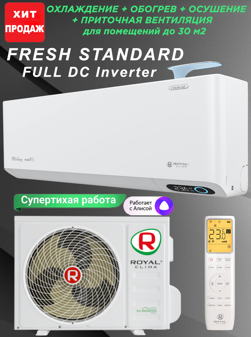 Непревзойдённая инверторная сплит-система бризер ROYAL FRESH STANDARD Full DC EU Inverter RCI-RFS28HN (комплект)