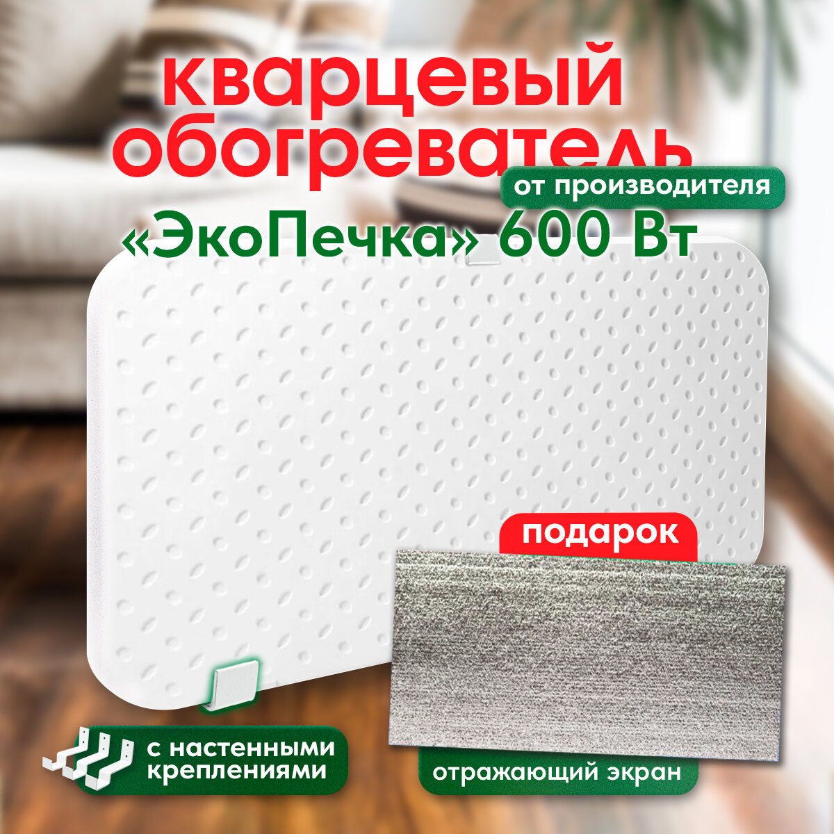 Инфракрасные обогреватели Кварцевый обогреватель "ЭкоПечка-С 600" экологичный, электрический, настенный, для дома и дачи, энергосберегающий + подарок отражающий экран + гарантия 10 лет