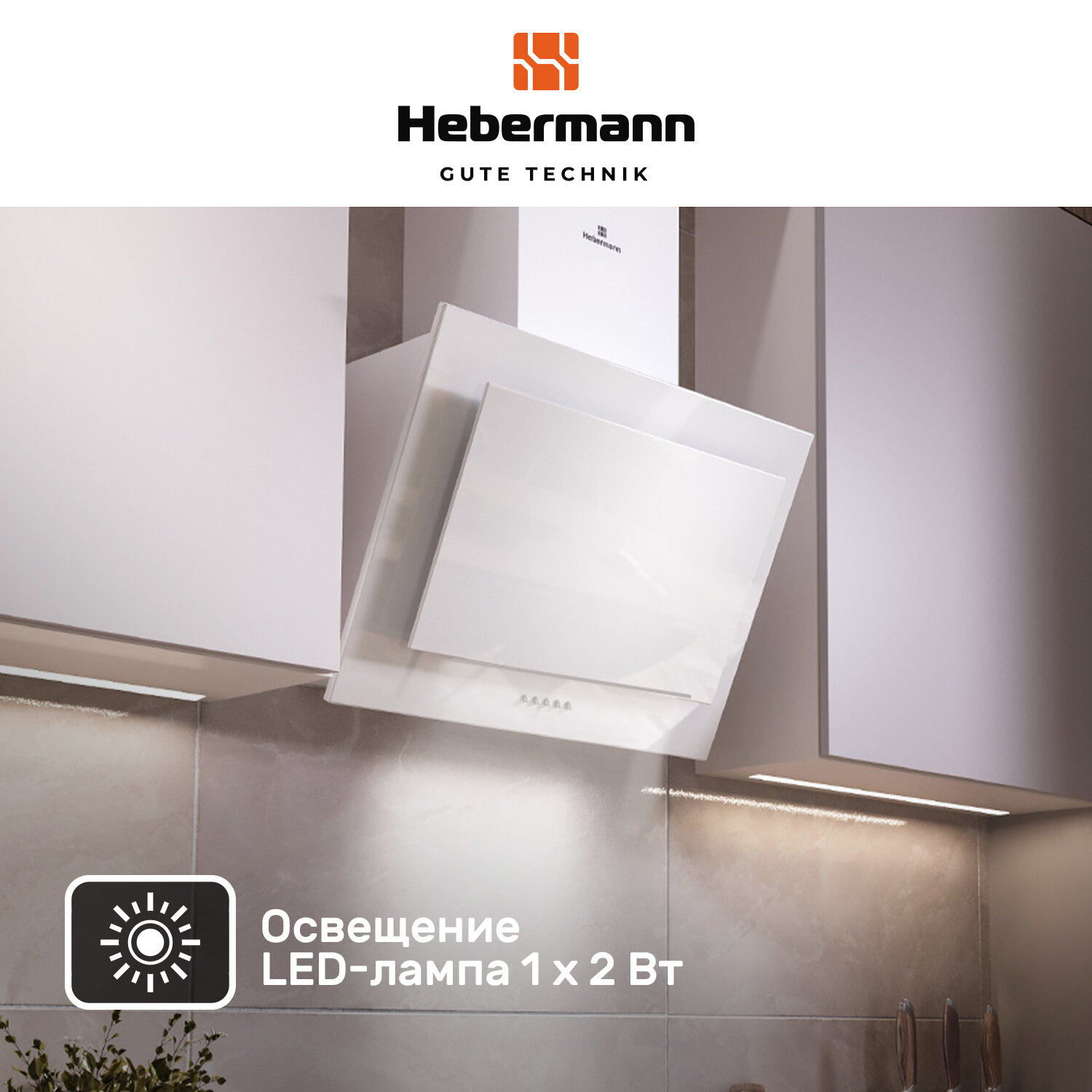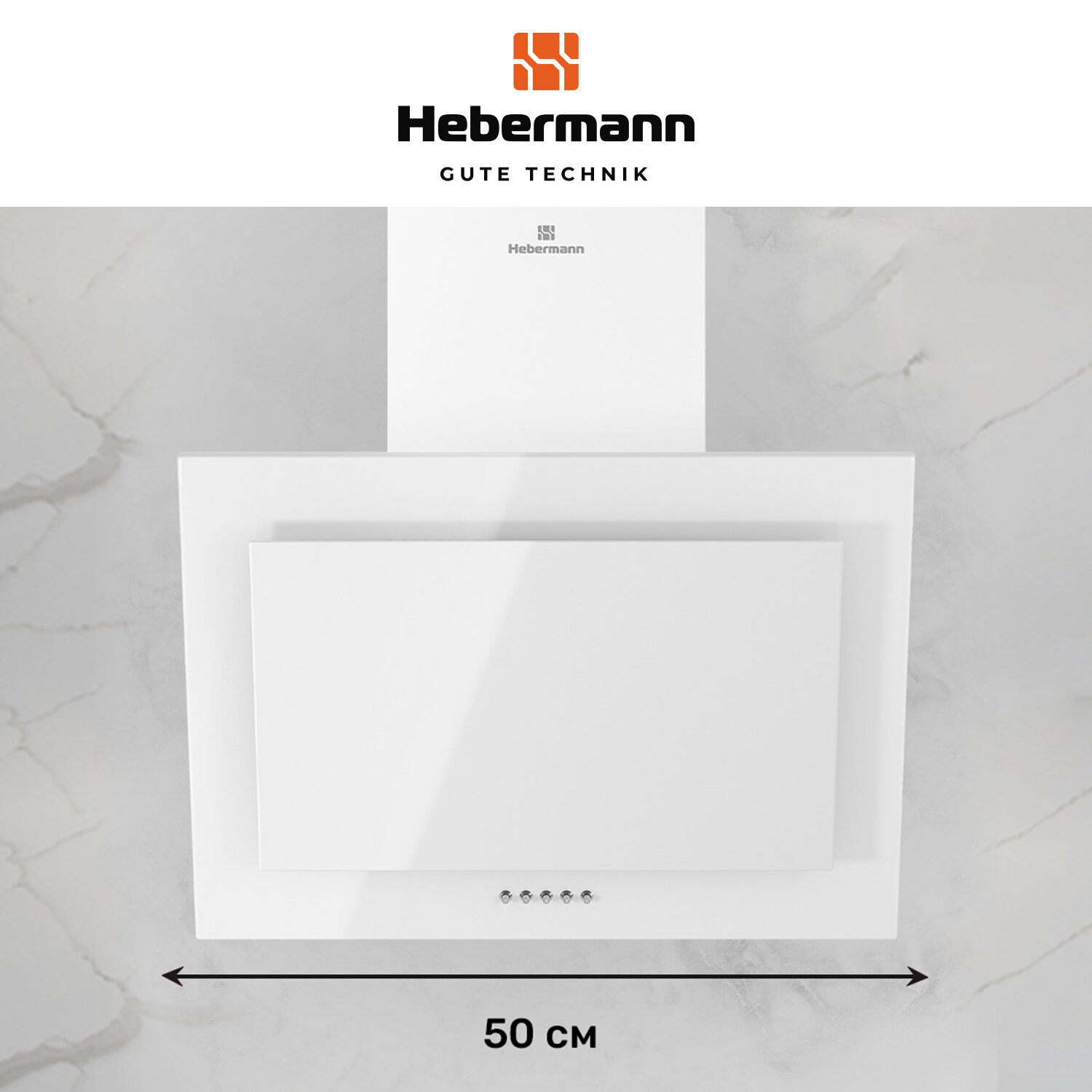 Вытяжки Наклонная кухонная вытяжка Hebermann HBKH 50.4 W, 50см, белая, кнопочное управление, LED лампы, отделка- стекло, производительность 700 м³/ч