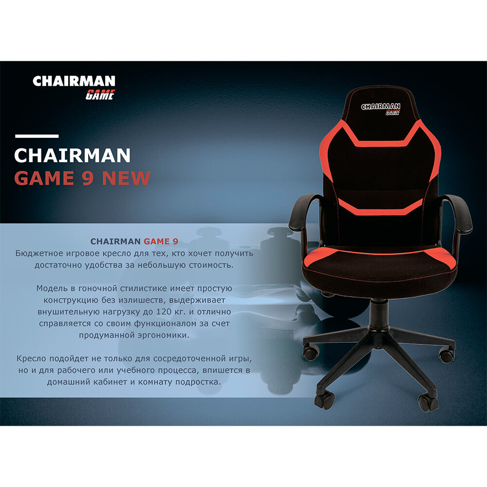 Игровое компьютерное кресло CHAIRMAN GAME 9 NEW, ткань, черный/красный
