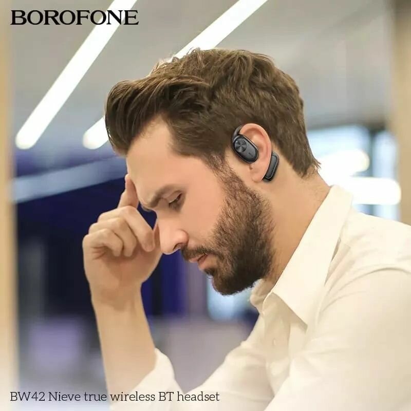 Наушники TWS беспроводные наушники ( спортивная беспроводная гарнитура ) Borofone BW42 с открытой конструкцией ( открытым ушным каналом ) цвет: Черный