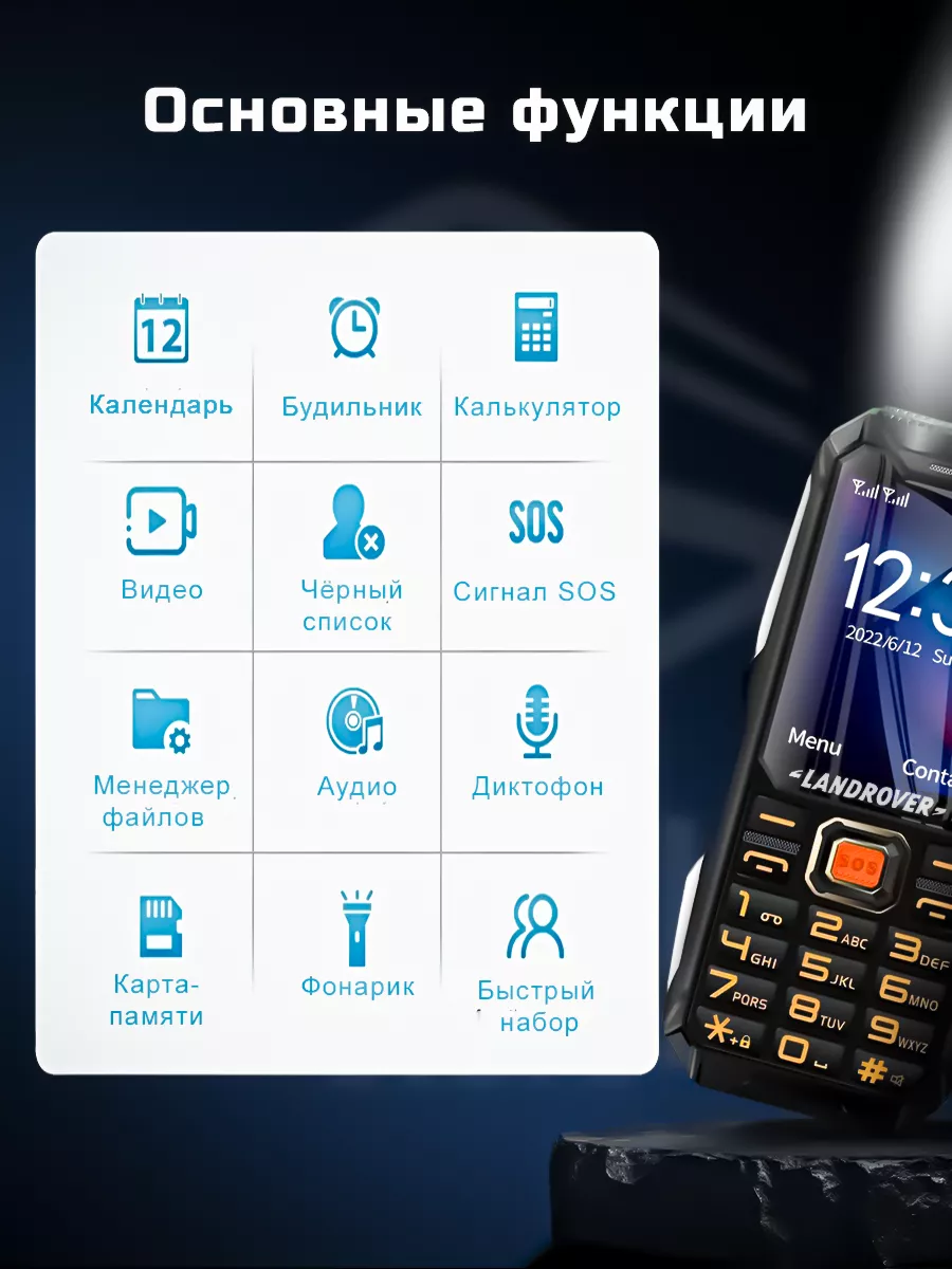 | Функции и возможности | FM-приемник / кнопка экстренного вызова / полноценный фонарик |