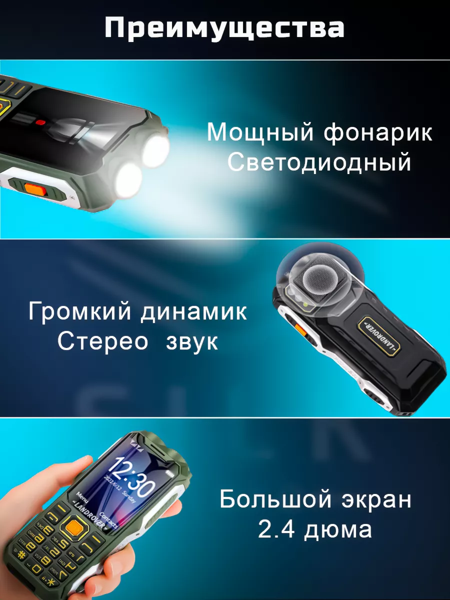 Зеленый Противоударный Мобильный телефон Land Rover Q8 / Русская Клавиатура 2 820 ₽ Подробнее