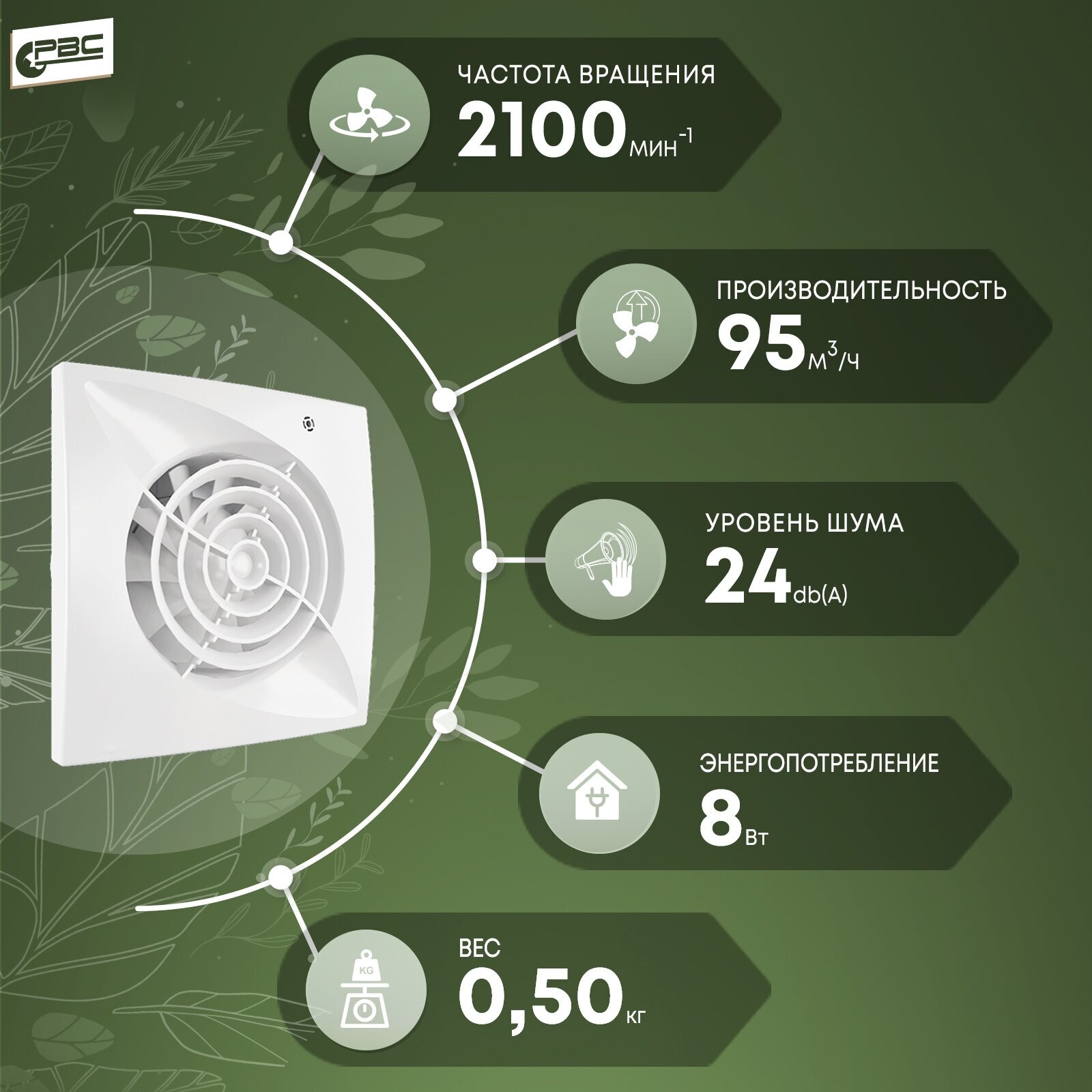 Вытяжки Вентилятор вытяжной тихий РВС Полярис 100, энергосберегающий, 8 Вт, 24 дБ, 95 м3/ч