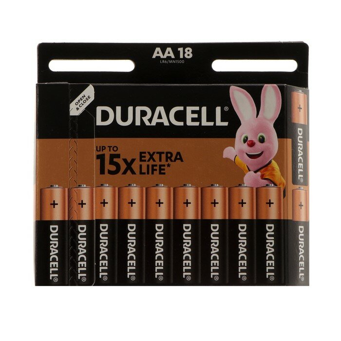 Батарейки Duracell 18 шт, Basic, AA LR06, 15А, алкалиновые, пальчиковые, блистер