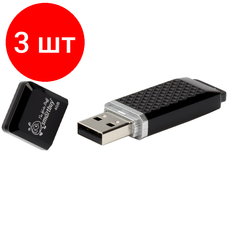 3 шт. Память Smart Buy "Quartz" 4GB, USB 2.0 Flash Drive, черный
